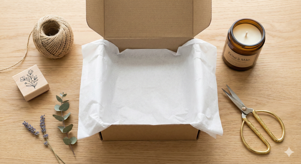 Todas as Categorias Do Básico ao Uau: Como Criar um Unboxing Inesquecível (Gastando Pouco) por Lígia Rubia - Publicitária e Maker por Lígia Rubia - Publicitária e Maker Bookmark 18 Sabe aquela sensação gostosa de quando chega uma encomenda e parece que a gente ganhou um presente, mesmo tendo sido a gente que comprou? É sobre isso que vamos falar hoje: Experiência de Unboxing. Muitas artesãs acham que para ter uma embalagem linda precisa gastar rios de dinheiro com caixas personalizadas e logomarca metalizada. Mentira!A embalagem é a “roupa” da sua vela. É ela que vai dizer para o cliente: “Isso aqui foi feito com amor” ou “Isso aqui é um produto de luxo”. E o melhor: dá para fazer isso de forma artesanal, criativa e econômica.Separei 4 dicas práticas para você montar uma embalagem que vai fazer sua cliente pegar o celular na hora para postar nos Stories! 📦✨ 1. Segurança em Primeiro Lugar (O “Feio” Necessário)Não adianta a caixa ser linda se a vela chegar quebrada (vidro é traicoeiro!). O segredo é camuflar a proteção.Dica Ecológica: Substitua o plástico bolha pelo Papel Colmeia (aquele marronzinho que estica). Ele é sustentável, protege super bem e dá um ar rústico chique que combina super com velas artesanais.Dica Econômica: Se usar plástico bolha, envolva-o em uma folha de papel de seda colorido para não ficar com “cara de mudança”. 2. A Identidade Olfativa (O Cheiro da Marca)O unboxing começa pelo nariz! Antes de ver a vela, a cliente precisa sentir que a encomenda chegou.O Truque: Borrife um “Home Spray” (pode ser o aroma da sua marca ou um cheirinho suave de bambu/algodão) na parte interna da caixa ou no papel de seda.⚠️ Cuidado: Espere o papel secar antes de colocar a vela, para não manchar o rótulo. 3. Papelaria Afetiva (O Toque Humano)Lembra que somos Makers e não máquinas? Use isso a seu favor!Cartão de Agradecimento: Escreva o nome da cliente à mão. “Oi, Ana! Preparei com carinho…”. Isso conecta na hora.Manual de Cuidados: Não esqueça de enviar um cartãozinho avisando para aparar o pavio e não deixar a vela sozinha. Isso mostra profissionalismo e cuidado. 4. Acabamentos que Custam CentavosAqui é onde a mágica acontece sem estourar o orçamento:Carimbo: Mandar fazer uma caixa impressa é caro. Mandar fazer um carimbo com sua logo é barato! Compre caixas de papelão pardo (kraft) simples e carimbe sua marca. Fica minimalista e lindo.Flores Secas: Um raminho de sempre-viva ou lavanda preso no laço de barbante custa centavos e dá um charme provençal.Lacre de Cera (Sinetes): Se quiser elevar o nível, feche o papel de seda com um pingo de cera e um sinete. É o auge da elegância! Onde Comprar Embalagens?Não precisa comprar 1.000 caixas de uma vez.Shopee/Mercado Livre: Ótimos para comprar papel de seda, fita de cetim e caixas kraft em pouca quantidade (kits com 10 ou 20).Armarinhos da Cidade: Para fitas e cordões. ConclusãoA embalagem é a primeira impressão física que sua cliente tem da sua marca. Ela não precisa ser cara, ela precisa ser intencional.Capriche nos detalhes! Um unboxing bem feito gera compartilhamento espontâneo no Instagram (o famoso “marketing de graça”).E você? O que costuma colocar na sua caixinha para mimar a cliente? Me conta aqui nos comentários! 👇Um beijo e boas embalagens! Lígia Rubia 0 comments 0 FacebookTwitterPinterestEmail Lígia Rubia - Publicitária e Maker Follow Author Ligia Rubia é publicitária, maker e especialista em DIY. Compartilha dicas, tutoriais e inspirações em www.ligiarubia.com.br e no Instagram @oficialligia. Acredito que a arte transforma a vida!" Por isso, defendo que a criatividade não é apenas uma profissão, mas uma forma de expressão, cura e conexão com nossa essência mais verdadeira! previous post Como Precificar suas Velas e Parar de “Pagar para Trabalhar” (O Fim do Medo da Matemática) next post Como Fazer Sua Primeira Vela Artesanal: O Guia Completo e Sem Mistérios em 5 Passos You may also like Bookmark Corantes, Micas e Pigmentos: O Guia Definitivo para... Bookmark O Guia Definitivo dos Pavios: O “Motor” da... Bookmark Socorro, minha vela ficou feia! Guia SOS para... Bookmark A Matemática do Pavio: Como escolher o tamanho... Bookmark A Batalha dos Pavios: Algodão ou Madeira? Qual... Bookmark Por que minha vela não tem cheiro? Os... Bookmark Parafina, Coco, Palma ou Soja? O Guia Definitivo... Bookmark O Poder do Unboxing: Como criar uma embalagem... Bookmark Vitrine de Milhões: Como tirar fotos de artesanato... Bookmark Shopee, Elo7 ou Loja Virtual? O comparativo sincero... Deixe um Comentário Cancel Reply Δ